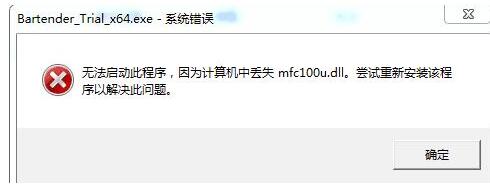 出现此故障多是因为电脑系统使用的是XP系统,或安装了ghost系统,与BarTender标签设计软件没有直接关系,只需成功安装mfc100u.dll这个组件就行了。