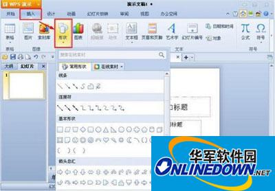 因此,在制作演示文稿的时候,我们常会插入一些形象的形状图片来代表某些意义,今天小编为大家介绍一下如何在wps演示中插入自选图形。