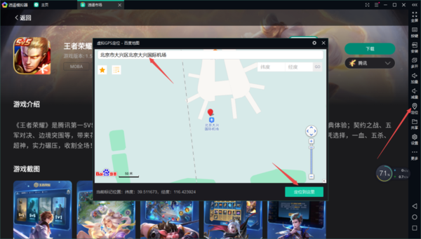 逍遥安卓模拟器上的王者荣耀游戏怎样修改定位