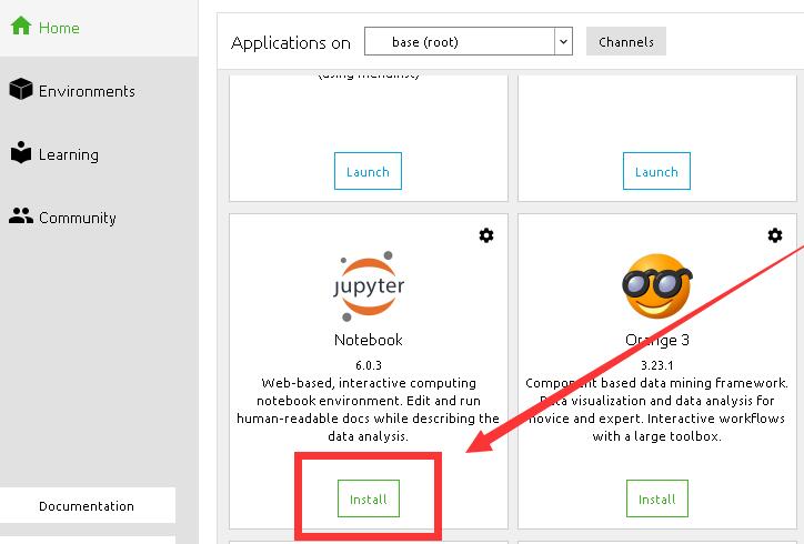 找到Jupyter Notebook快捷方式,点击Install进行安装