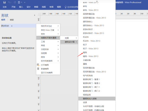 第五步:接下来我们就可以利用Visio左边栏的“植物图”形状图以及工具栏中的工具进行绘制植物图了。如下图: