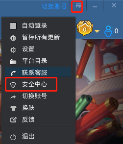 在电脑上打开梦三国2客户端,并登录自己的账号,再点击页面右上角的“平台选项”图标,在出现的下拉选项栏中,选择“安全中心”按钮,就能自动打开浏览器跳转到电魂安全中心。