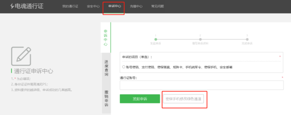如果之前在梦三国2上绑定的手机号已经不再使用了,用户可以通过账号解绑申诉来更换密保手机号。同样是在梦三国2账号安全中心界面,点击上方的“申诉中心”选项,再选择“密保手机修改绿色通道”选项。