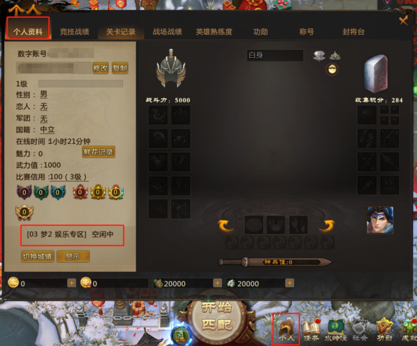 已经注册有梦三国2账号,想要看自己处在哪个城镇的小伙伴,可以在打开梦三国2客户端正式进入游戏之后。点击页面下方的“个人”图标,在弹出的个人资料窗口,就能查看自己所在城镇区和空闲程度了。