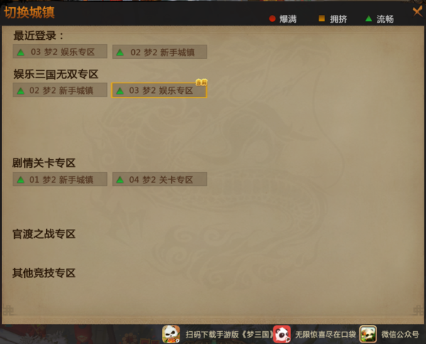1.在选择城镇的时候,如果显示该城镇处于爆满状态,可能会出现切换不成功的情况,可以多尝试几次看能不能挤进去。