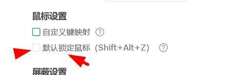 第三步:最后就可以往下拉看到【默认锁定鼠标】属性单击勾选进行关闭。