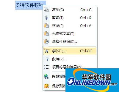 (1)选中需要修改的文字,单击鼠标右键选择“字体”。