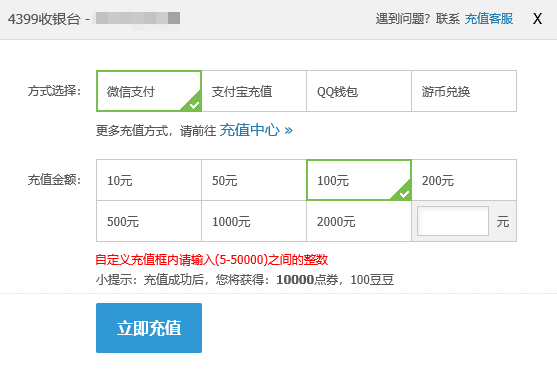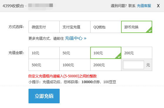 使用游币进行兑换充值的,需要提前购买游币才行,在4399游戏大厅上,1游币对应的是一元钱。