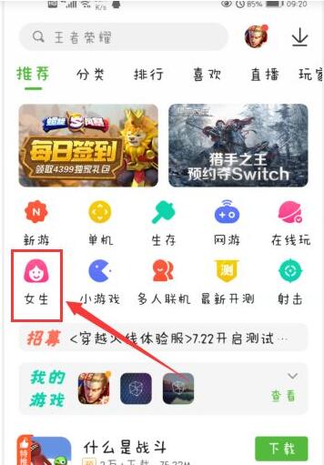进入4399游戏盒,再然后选择点击女生分类。