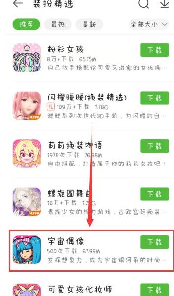 点进女生分类后,进入页面选择装扮精选进入。