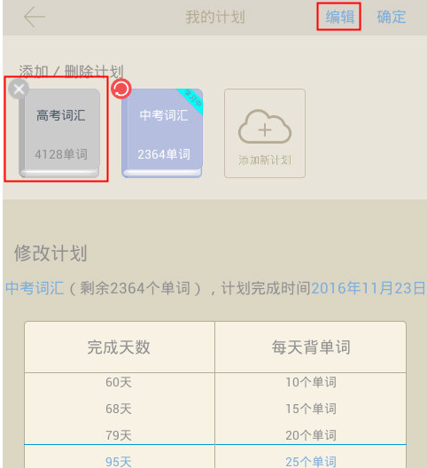 第三步:在“我的计划”界面中,点击“编辑”,然后选择要删除的学习计划;
