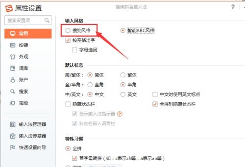 第四步:进入到了常用界面中,点击搜狗风格选项(如图所示)。