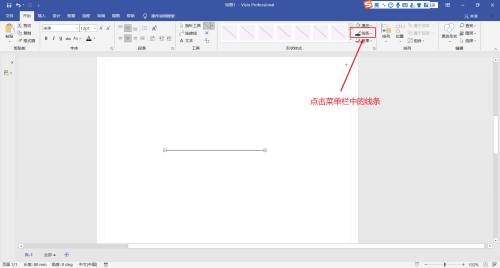 第四步:选中绘制好的直线, 点击菜单栏中的线条。