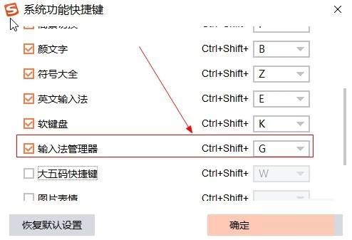 第六步:找到输入法管理器,在右侧设置快捷键即可(如图所示)。