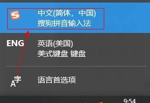 第一步:点击任务栏右下角语言区域,选择搜狗输入法(如图所示)。