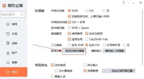 第五步:在右侧窗口,点击系统功能快捷键按钮(如图所示)。