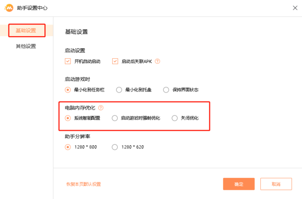 同样是先点击首页的三根横线图标,选择“设置中心”选项。跳转到设置中心后,在基础设置中,就能看到电脑内存优化一栏,勾选上“系统智能配置”,或者“启动游戏是强制优化”就完成了。