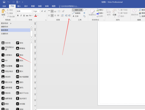 第六步:接下来我们就可以利用左边栏的“形状图”以及工具栏中的工具进行绘制方向图了。如下图: