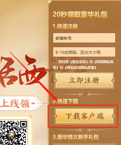 下载方式2:通过官网下载,在大话西游2经典版官网的右侧附近可以找到“下载客户端”按钮,我们直接点击即可下载。