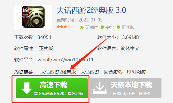 下载方式1:大家从本站直接下载,点击“高速下载”进行大话西游2的安装包下载,本站提供的安装程序是绿色安全的软件,为大家省下了再去查找软件资源的麻烦,可以更快速的把软件下载到电脑中。