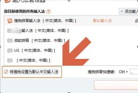 第五步:我们可以勾选该窗口左下角的“将搜狗设置为默认中文输入法”(如图所示);
