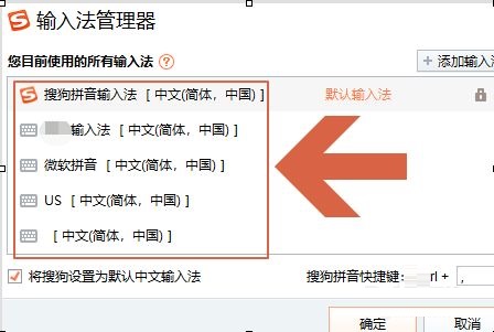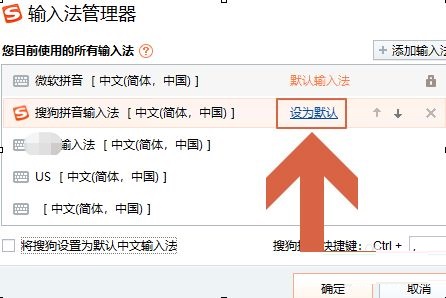 第六步:也可以将鼠标移动到搜狗输入法上方,然后点击右侧的“设为默认”(如图所示)。