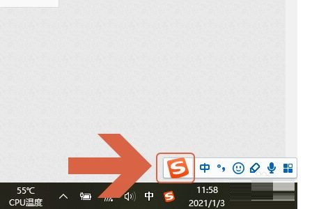 第一步:首先找到电脑屏幕右下角的搜狗输入法状态栏,并且点击状态栏最左侧的“S”(如图所示);
