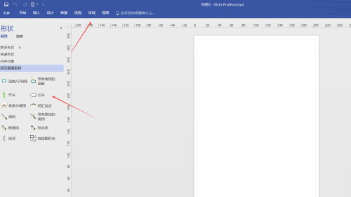 第六步:接下来我们就可以利用左边栏中的“形状图”以及工具栏中的工具进行绘制程序结构图了。如下图: