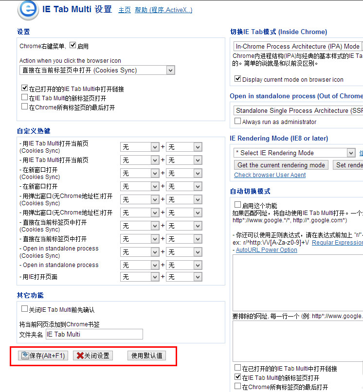 3、安装完毕后,会弹出插件的具体设置,默认情况不需要改动,点击保存,关闭即可