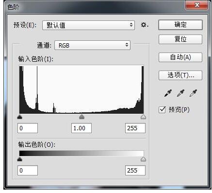 点击图像→调整→色阶,在弹出的“色阶”对话框中左右移动色阶对话框的三个按钮,选择最佳亮度,然后点击确定即可