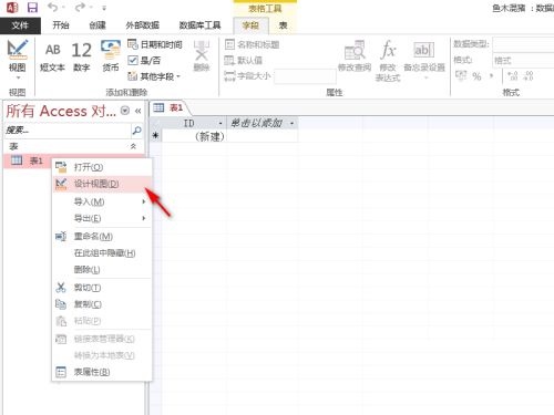 第二步:右键点击左侧默认的数据表,选择弹出列表中的“设计视图“,如下图所示。