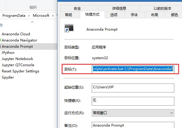 打开文件位置之后,右键,查看属性。复制目标(cmd.exe后面的命令部分)