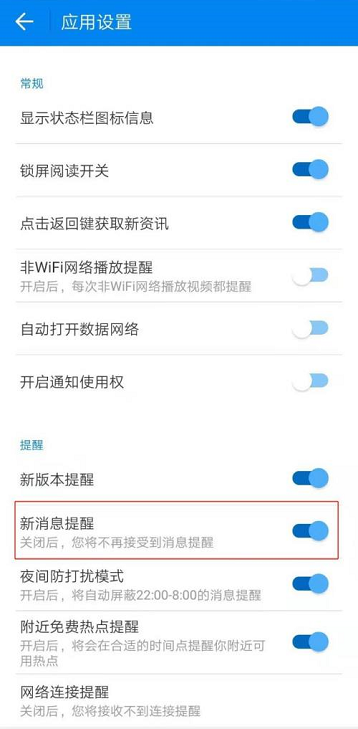 第六步:最后就开启新消息提醒了,如图所示。