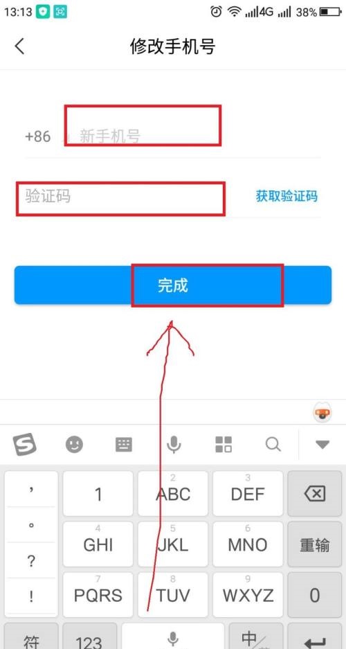第五步:根据提示输入新的手机号,并获得验证码,最后点击完成,即可完成手机号码更改(如图所示)。