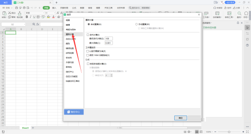 第二步:在打开的“选项”中,可以看到有很多的表格相关的功能,单击其中的“重新计算”功能选项。