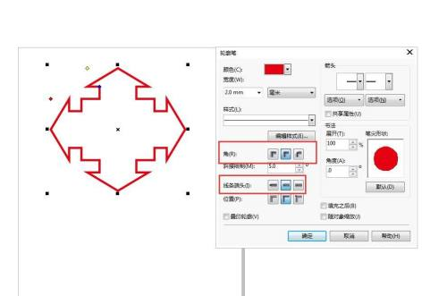 第六步:还可以设置转角为圆角或方角,及线条为圆头或方头。设置完后效果如图: