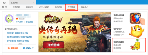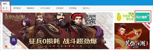 想要在4399游戏大厅上抽奖的小伙伴,小编这里发现有两种跳转到4399豆豆抽奖页面的方法途径,具体内容如下。