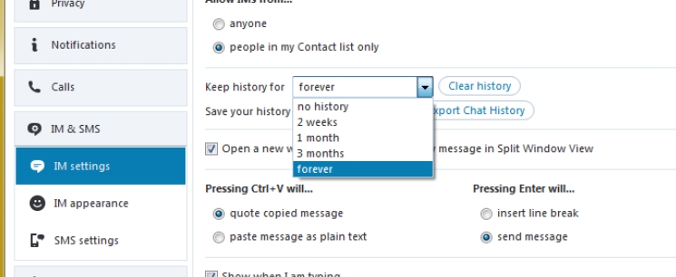找到“保留历史记录”或类似的选项,并点击它旁边的“清除历史记录”按钮。这个操作将会删除当前Skype会话中所有已保存的聊天记录。
