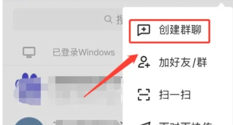 在点击“+”图标后,会弹出一个菜单,其中有一个选项是“创建群聊”。点击这个选项。