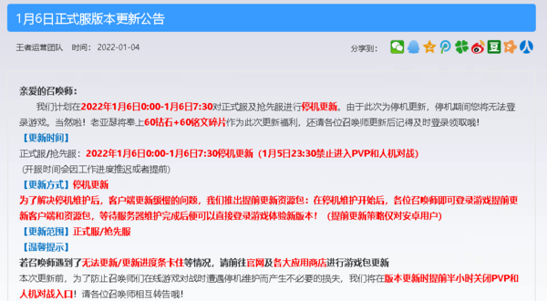 从王者荣耀官网发布的公告来看,王者荣耀会在今天早上完成停机更新,S26赛季也就正式开始了。要注意的是,王者荣耀官方会给玩家提供60钻石和60铭文碎片,作为本次停服更新的福利,各位小伙伴要及时登录领取哦。