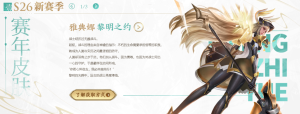 S26赛季专属皮肤,赛季之旅系统中,赛季历练值达到100时,可以直接获得该皮肤。