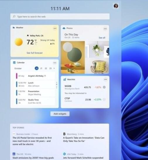 “资讯和兴趣”在Win11中已不再提供,取而代之是全新的“负一屏”。相比Win10里的“资讯和兴趣”,负一屏能做的事情更多也更丰富。比方说你可以查看新闻,搜索或处理当天的日程,通过连带的Edge操作股票……。此外最关键的,是负一屏对触屏用户的体验更好。这……或许才是“资讯和兴趣”短命的原因!