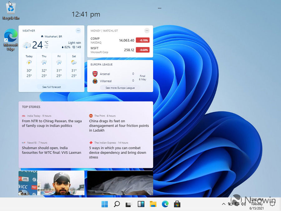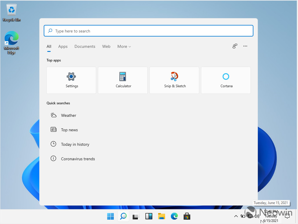 UI的变化看起来与最初在Windows 10X中发现的非常相似,后来微软取消了后者,转而合并到Windows 11当中。应用图标现在在任务栏的中心排列,任务栏包含一个新的开始按钮和圆角设计的开始菜单(但窗口似乎并没有打磨成圆角)。开始菜单是目前Windows 10中存在的一个简化版本,Live Tiles磁块已经被取消,不过钉住的应用程序依然存在。