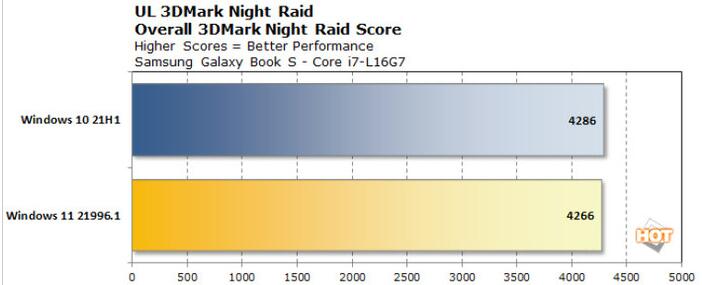最后是3DMark测试,该测试中没有呈现出显著的性能差异,这也是可以理解的——3DMark对驱动依赖较大,而新系统和新硬件都尚未有完善的驱动匹配。