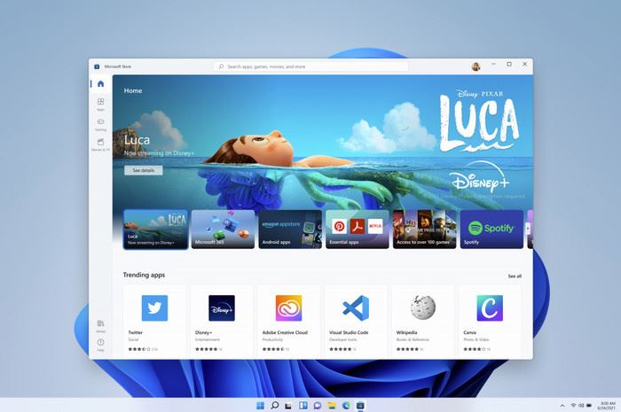应用商店也进行了重整,一个最直观感受就是图标更大、界面也更漂亮了。不过这只是表面上的变化,据微软 CEO 纳德拉表示,新商店将提供给开发人员更多机会,以帮助他们在这套全新的平台上获利。除了传统 UWP 应用外,新商店也将提供 .exe、PWA、.apk 等更多应用格式下载。并且扩充音乐、视频、电影等更多资源。可以预见,未来微软应用商店或将迎来更为海量的资源,从而真正成为 Win11 的资源体系中心。