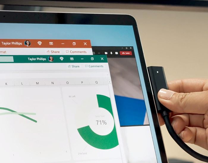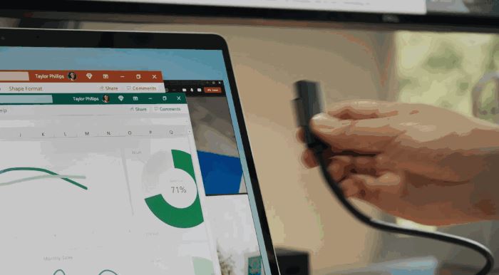 此外 Snap Layouts 也能根据所连接设备实时调节,比如当你将笔记本连入大屏幕,或者将主屏与电脑分开时,Snap Layouts 都会自动调整布局设置,以保证最好的演示效果。
