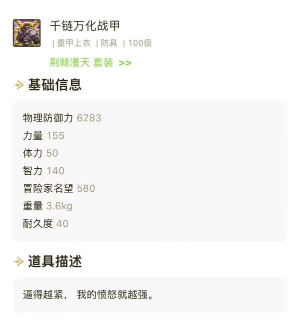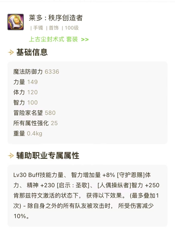 千链万化:整合词条65%;但很尴尬的是,没有技能攻击力词条,也没功能性加持,110版本难以成气候。