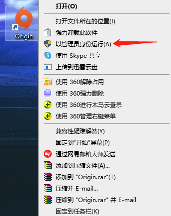 2、试着以管理员身份运行Origin。我们先关上Origin,重新打开Origin时,右键点击它,选择“以管理员身份运行”,这样一来,Origin就获得了许多系统权限,或许可以让它运行的更加顺利。