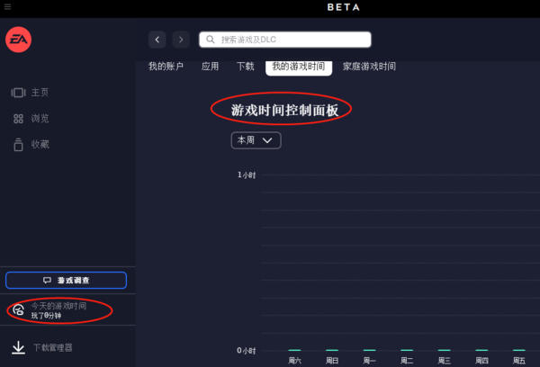 在用Origin的过程中,我们只可看到自己某款游戏的游戏时长,想统计与管理每天/每周的游戏时长就比较麻烦,而在EA桌面中,有了单独的游戏时长管理区,在这里我们不但可以看到自己每天的游戏时间,还可以看到自己每周,甚至是家庭的游戏时长,这方便于玩家对自己或是对家里小朋友的管理。
