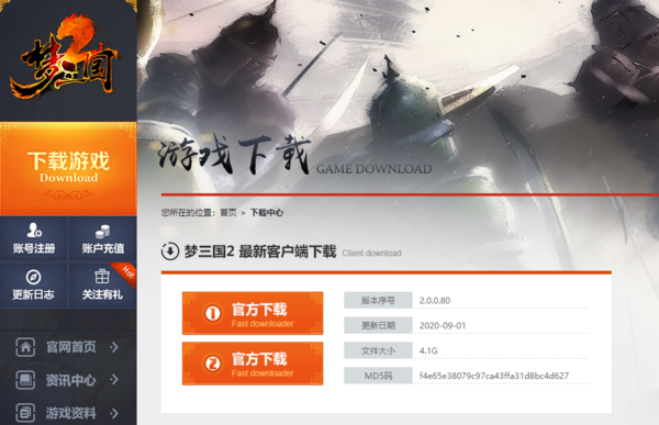 在浏览器上搜索梦三国2官网,进入到官网后,在首页左侧点击“下载游戏”键。跳转到游戏下载页面之后,找到梦三国2并点击一个下载通道,就能下载梦三国2客户端的安装包了。